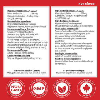 Nutridom Reishi Mushroom Extract 4x 500mg 120 Vegetable Capsules (QCE 2,000mg)