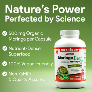 Nutridom Moringa Leaf 500mg 300 Vegetable Capsules (Organically Sourced, Antioxidants)