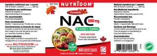 Nutridom NAC, N-Acetyl-L-Cysteine, 600 mg, 60 Veggie Capsules - 6 PACK