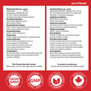 Nutridom Ginkgo Biloba 12000 (Extra Strength), 240mg, 60 Vegetable Capsules
