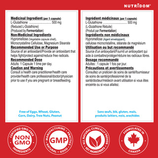 Nutridom L-Glutathione 500mg Extra Strength, Fermented, 60 Veggie Capsules