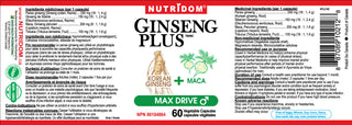 Nutridom Ginseng Plus Max Drive with Panax Ginseng, Maca, Siberian Ginseng and Tribulus Terresis, 60 Veggie Capsules