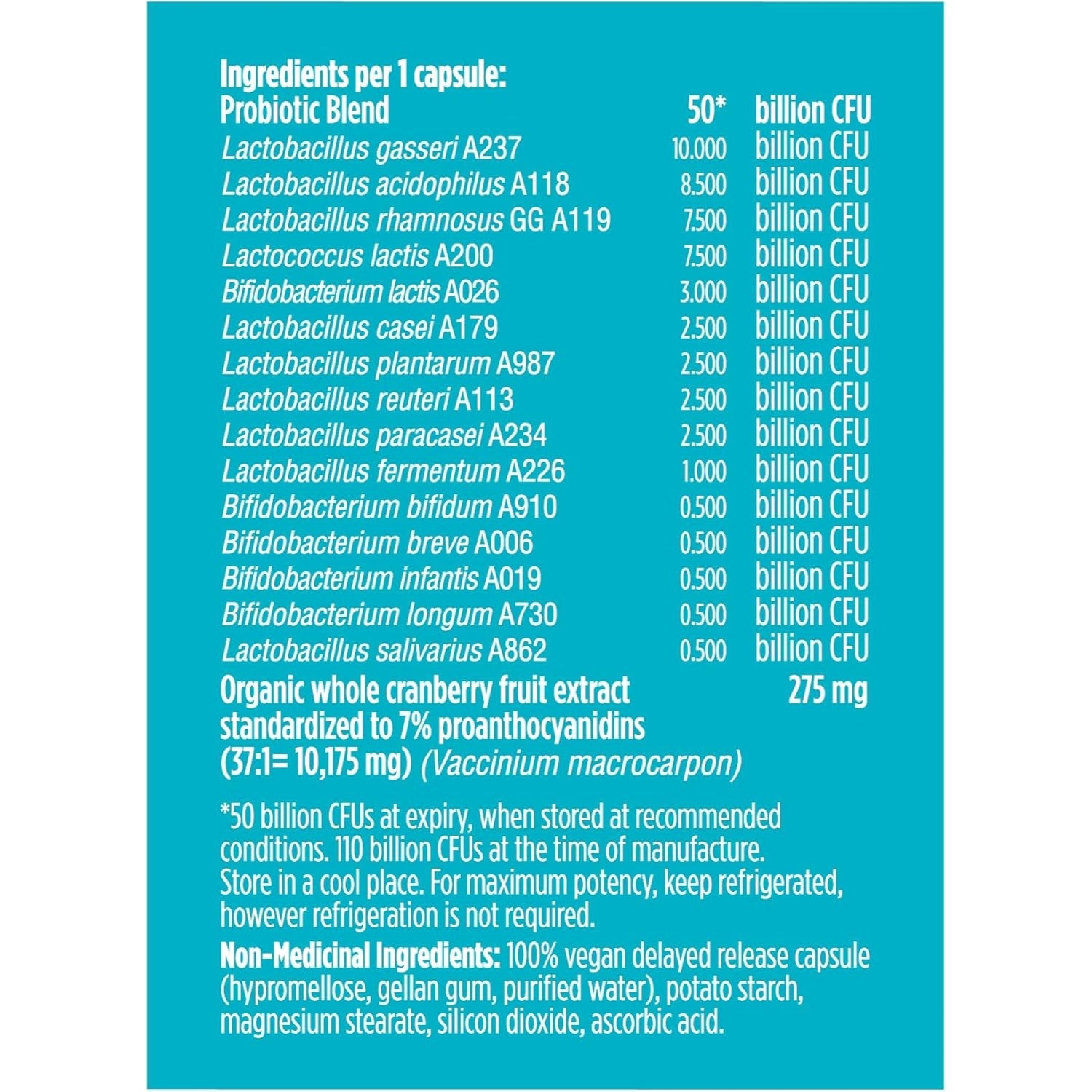 EXTRA-STRENGTH CRANBERRY EXTRACT SUPPORT: This 50B CFU probiotic is an extra-strength, preventative solution with a holistic design that helps target reoccurring UTI's from the source. Made with 275mg of CRANnaturelle (cranberry extract), our formula helps restore balanced pH levels, as well as healthy amounts of intestinal and vaginal flora, while flushing out urinary tract toxins, to help you manage the symptoms of UTI's and prevent them from coming back.