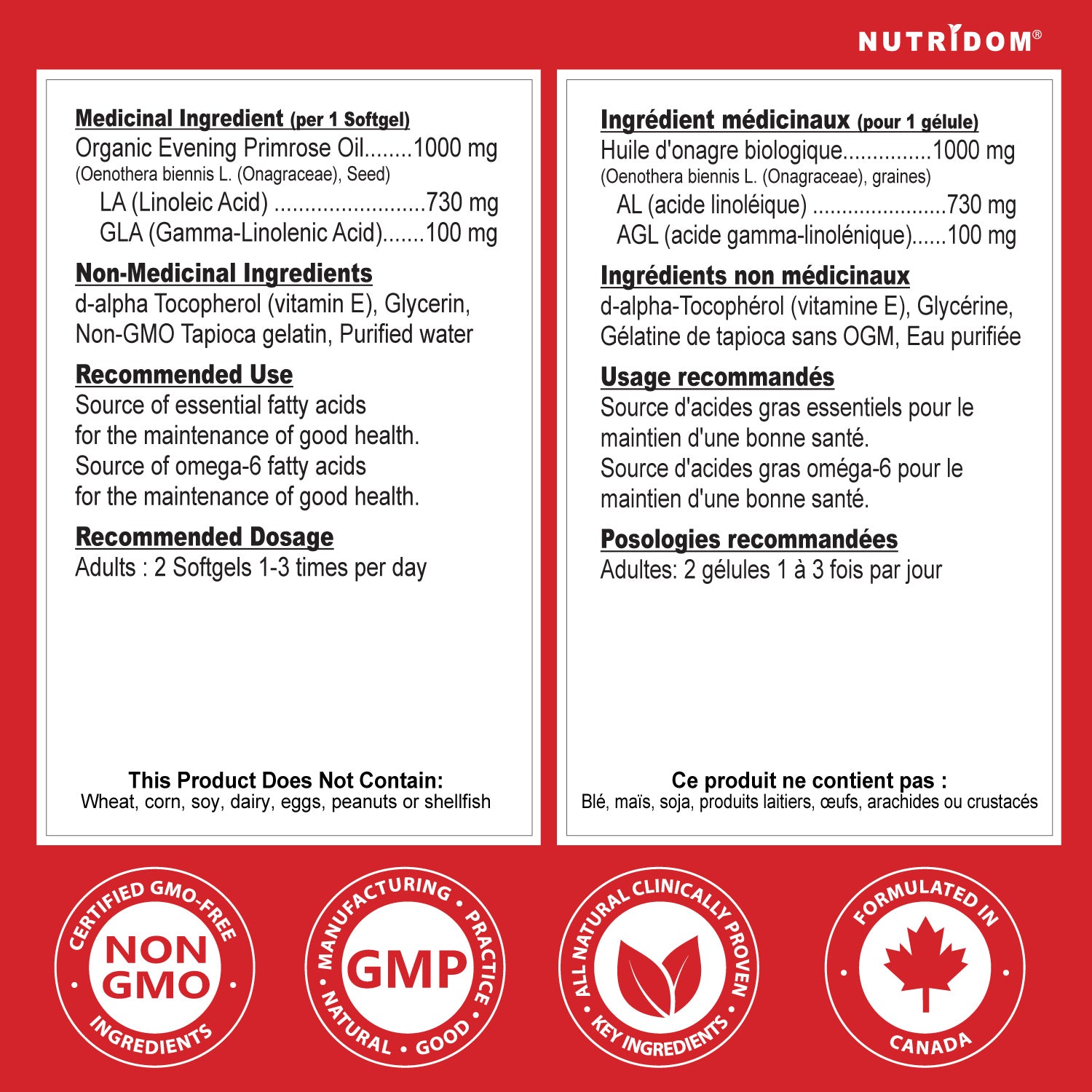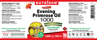 Nutridom Evening Primrose Oil 1000, 1000mg, 120 Softgels (Organically Sourced, Cold Pressed)