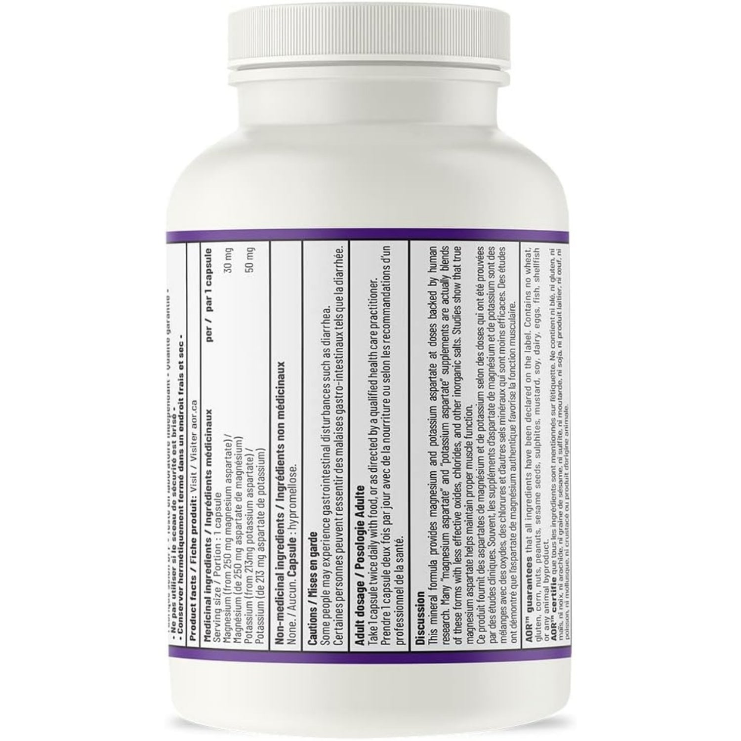 아스파르트산 또는 아스파르트산은 마그네슘과 함께 신체의 주요 에너지원인 ATP 생산에 기여하는 자연적으로 발생하는 아미노산입니다. 필수적인 전해질인 칼륨은 전기 및 세포 기능에 중요한 역할을 하며 신체의 산-염기 균형을 조절하고 신경 세포 기능을 적절히 보장하는 데 도움이 되며, 이는 신경화학 신호를 전달하는 데 중요합니다. 마그네슘과 칼륨은 신체에서 함께 작용하며, 마그네슘은 칼륨의 세포 수송을 돕습니다.