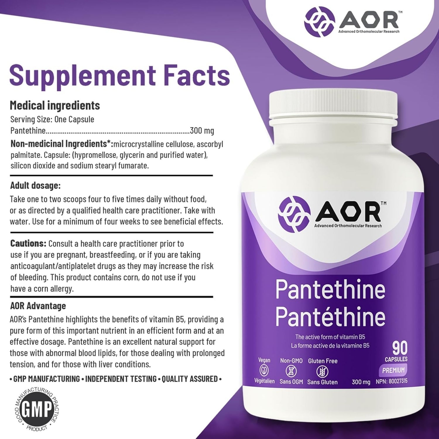 1996년에 AOR은 캐나다 최초의 독립형 비타민 B5인 판테틴(Pantethine)을 출시했습니다. 이후의 다른 많은 제품과 달리 AOR의 판테틴은 연구 지원 용량으로 이 중요한 영양소의 순수하고 효과적인 형태를 제공합니다. 판테틴은 혈액 지질이 비정상적인 사람, 지속적인 스트레스를 받는 사람, 간 질환이 있는 사람에게 탁월한 천연 보조제입니다.