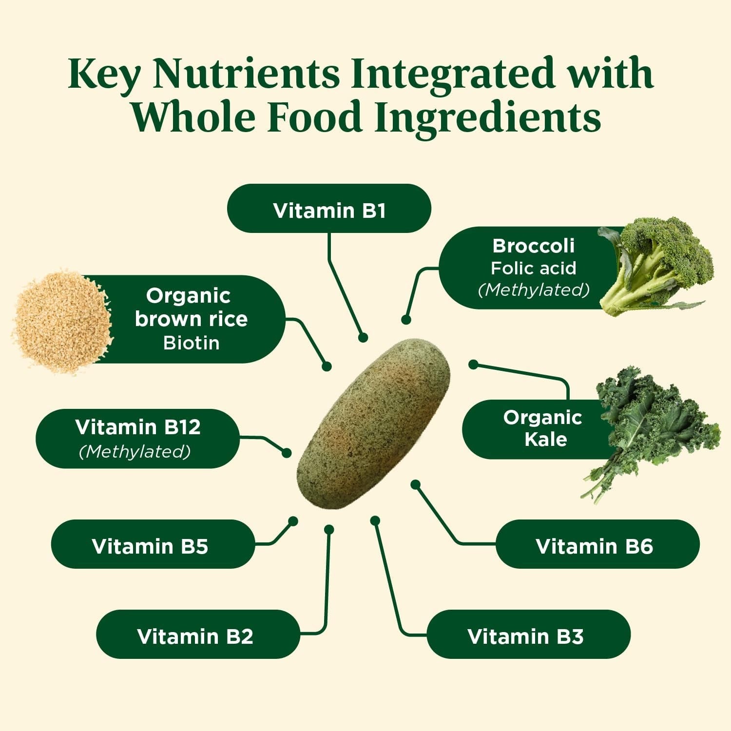 영양이 풍부한 전체 식품과 함께 제공되는 FoodState® B 복합 비타민의 균형 잡힌 비율은 음식을 세포 에너지로 전환하고 신경계 건강을 지원하는 데 도움이 됩니다*