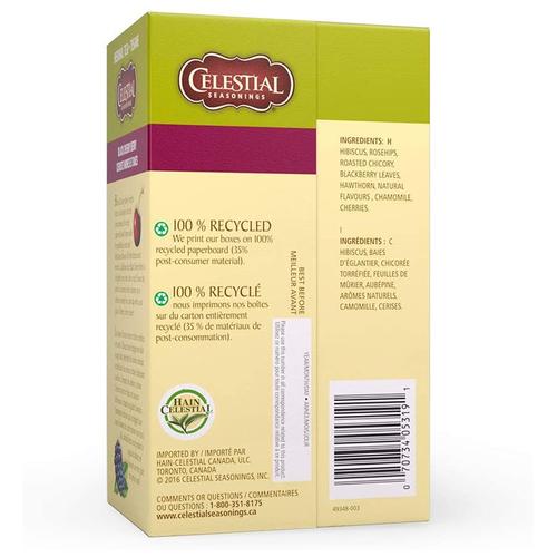 我们尽最大努力使网站保持最新状态,但请查看产品标签以获取最新的成分和过敏原信息 芙蓉、玫瑰果、烤菊苣、黑莓叶、山楂果、天然香料(包括黑樱桃、覆盆子、大豆卵磷脂)、洋甘菊、樱桃。含有大豆。