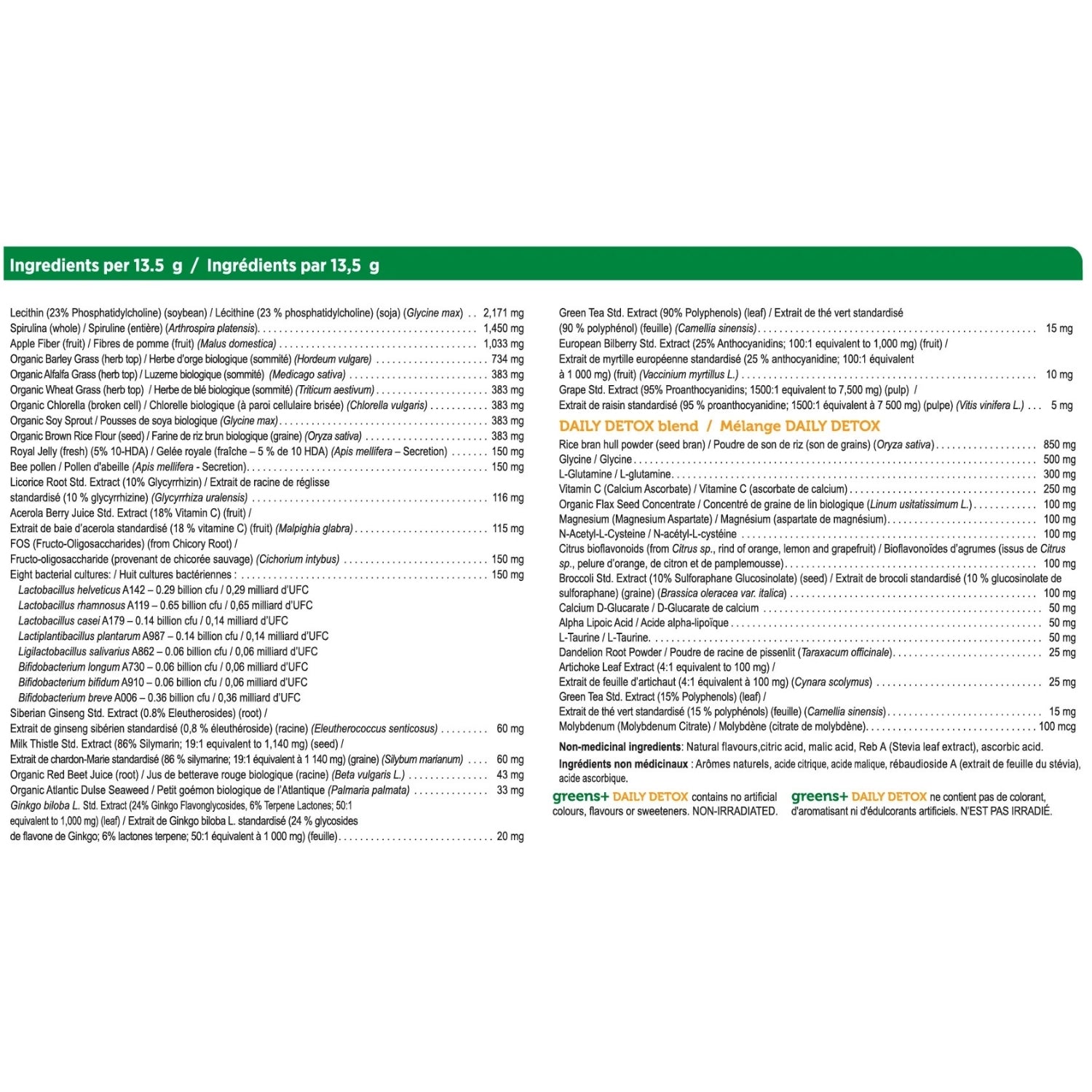 greens+ 每日排毒含有全份的 greens+,以及全天然清洁成分,有助于支持和清洁肝脏、皮肤、肾脏和胃肠道,为您带来明显的健康益处,包括改善皮肤、情绪和头脑清晰——自然而然的。