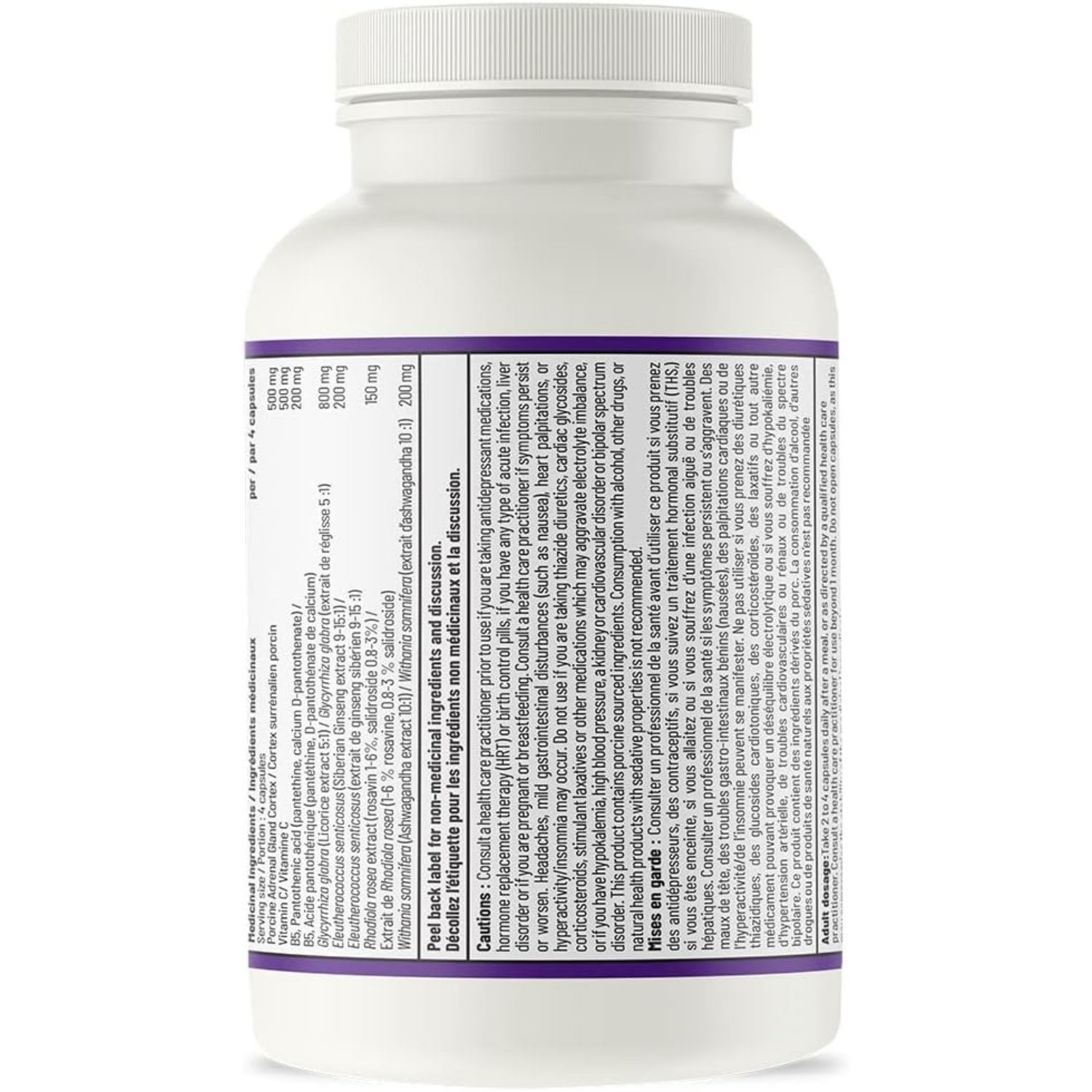 配方中含有肾上腺提取物、南非醉茄、红景天、甘草和西伯利亚人参等适应原草药以及维生素 C 和 B5。